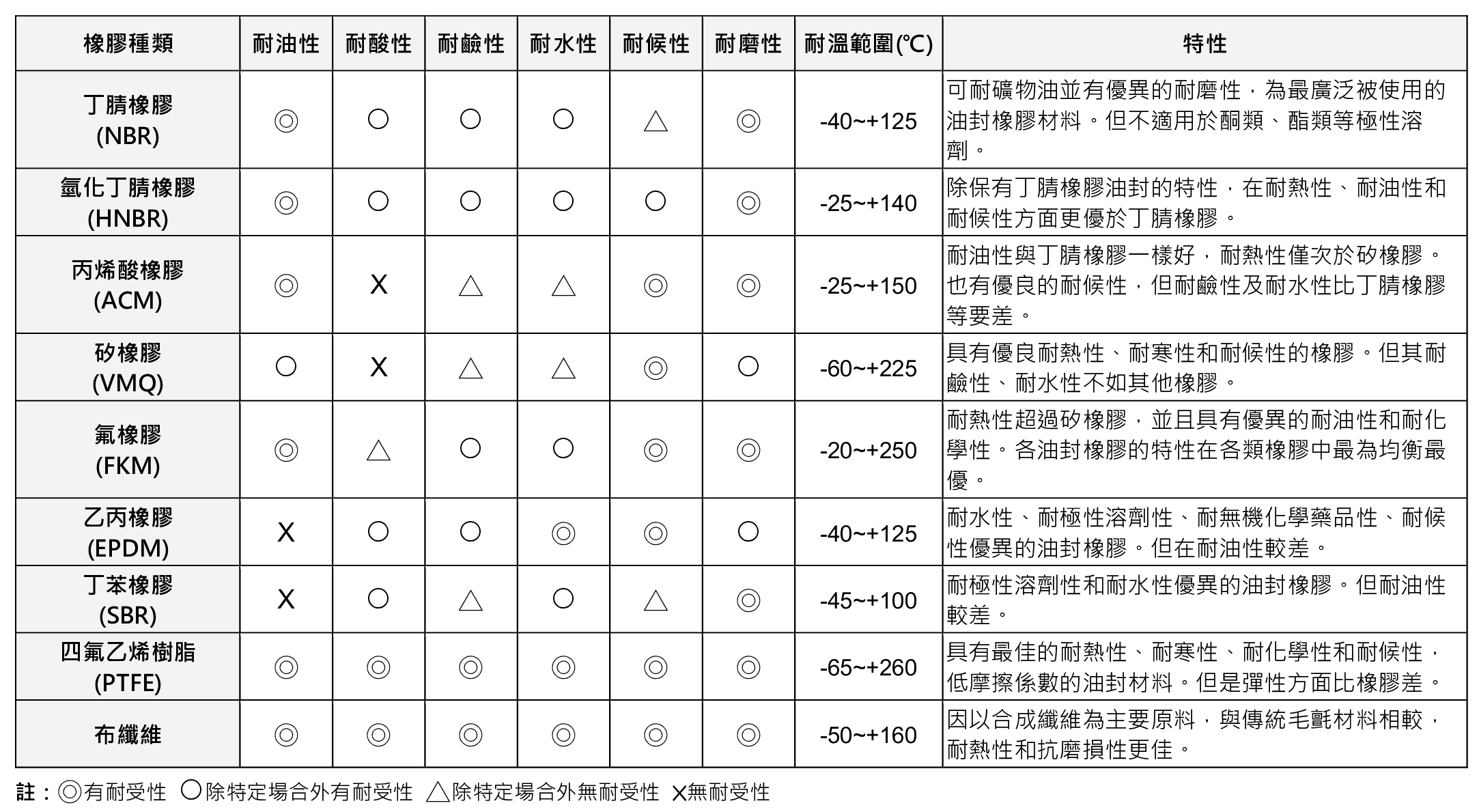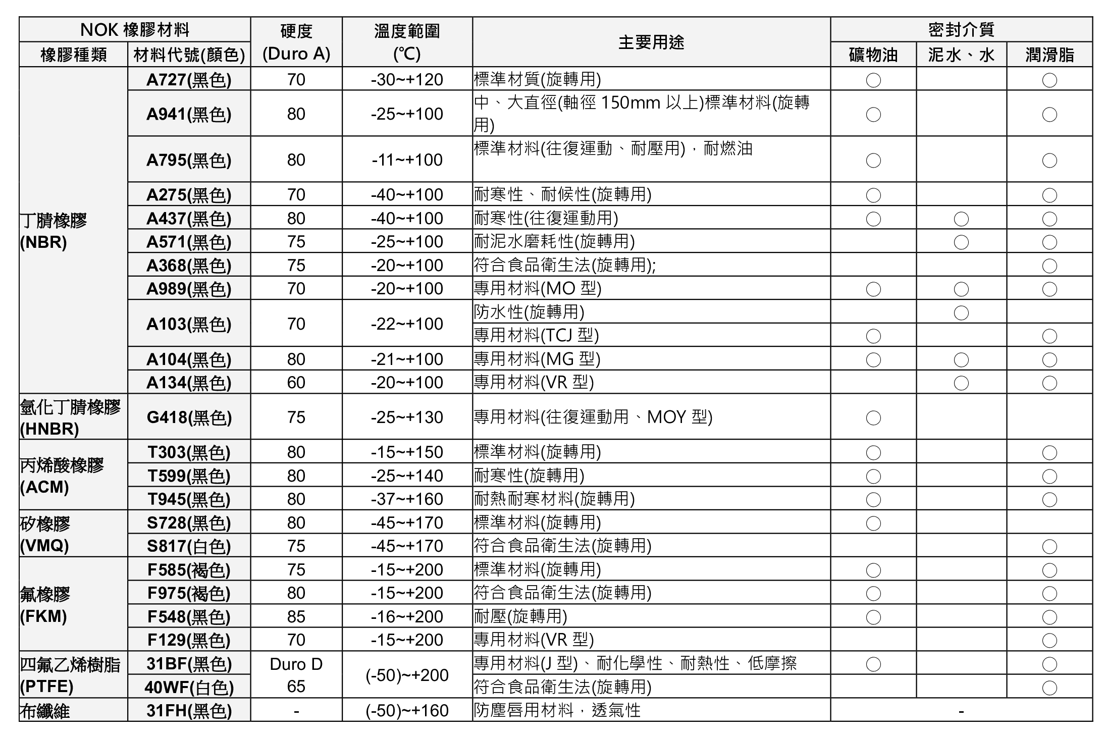 ④ 有優異的耐臭氧性及其他使用條件需求特性