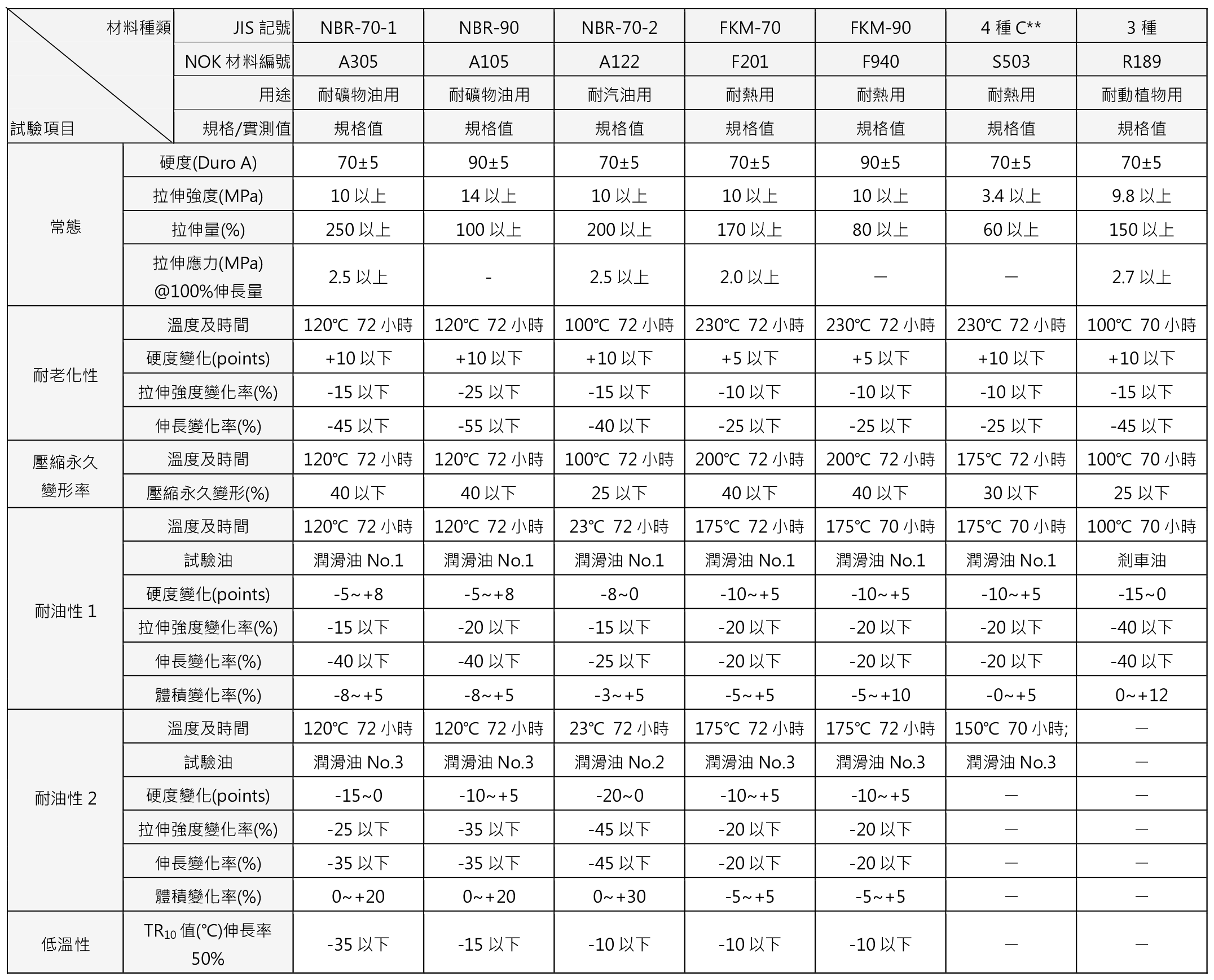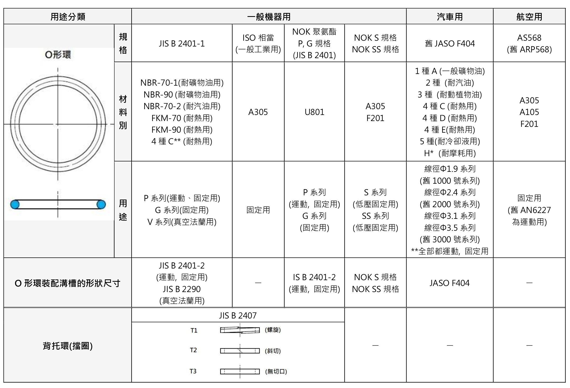 NOK O形圈系列尺寸速查表及系列尺寸表
