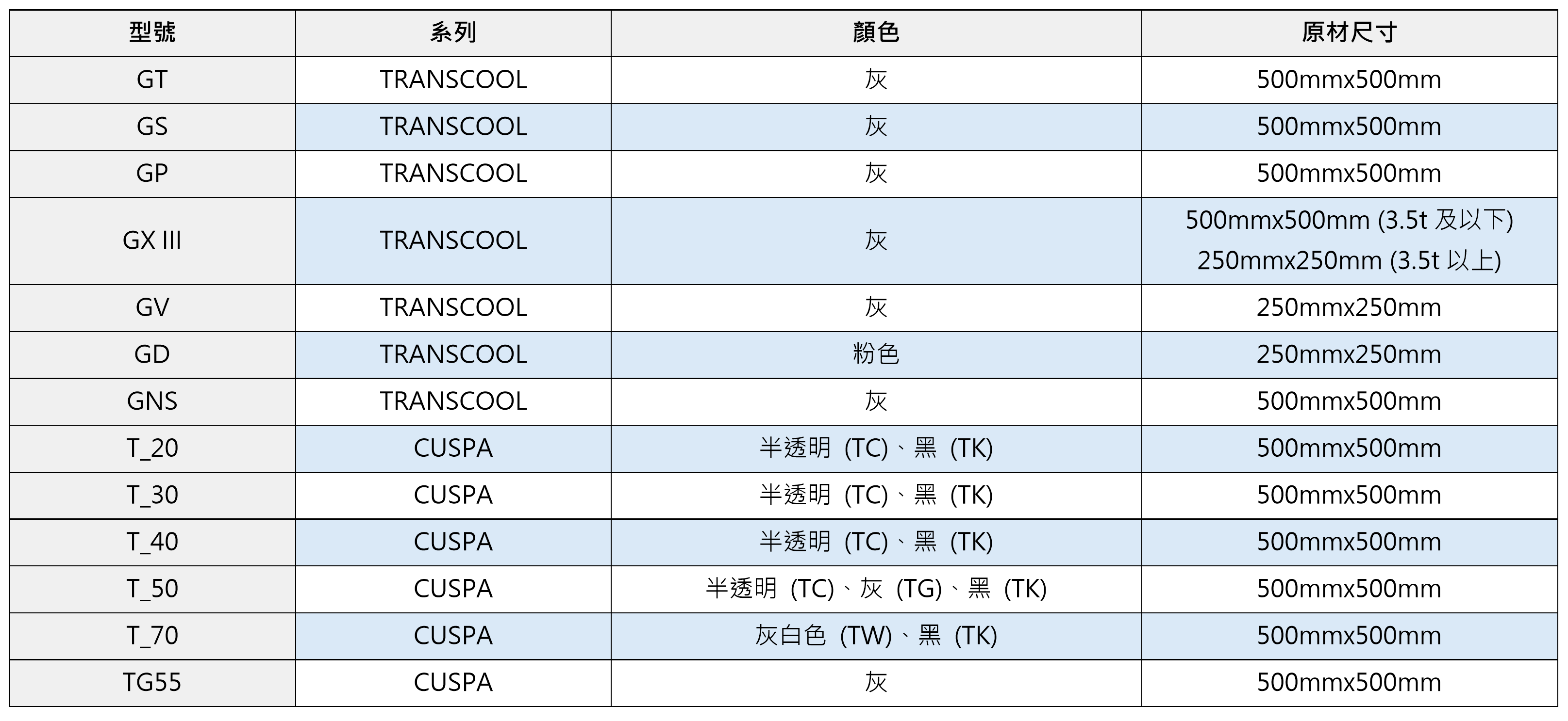 TRANSCOOL / CUSPA系列物性