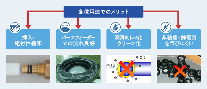 針對這些需求,O形圈專用的薄膜表面處理技術【SP處理】應運而生。此技術能保持O形圈的原有性能,同時實現無需潤滑劑輔助的組裝,不僅提高了操作便利性,還促進了生產現場的清潔化。