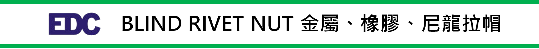盲孔鉚接拉帽(Blind Rivet Nuts):結合拉釘及螺帽於一體,可提供固定功能或和螺絲併用以固定附加工件用,因為單邊操作故可用於封閉式工件,安裝簡單可提高工作效率。